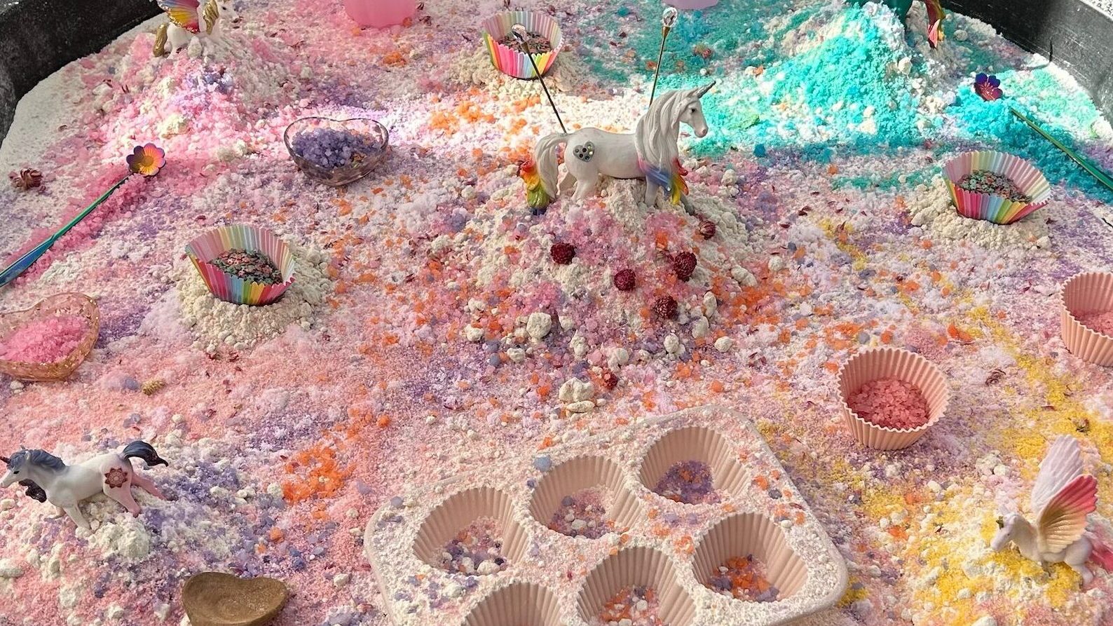 Todas nuestras bases sensoriales están hechas por nosotras con alimentos naturales y colorantes vegetales , lo que hace la experiencia segura.